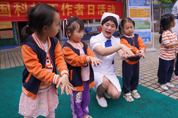 小朋友们,你们知道怎样才是正确的洗手方式吗?”5月25日,在“全国科技工作者日”来临之前,作为中国康复医学会科技工作志愿者成员单位,广西科技大学第一附属医学院献礼2021中国康复医学会全国科技工作志愿者日活动,来到柳州碧丽星城“小红帽幼儿园”,为全体师生带来了一堂生动的健康科普知识活动课。
