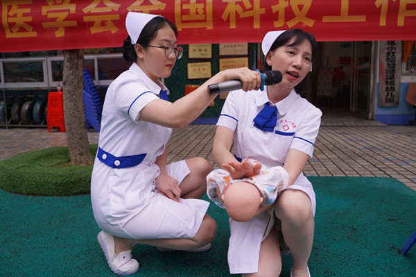 医院护士向幼儿园师生普及婴幼儿海姆立克急救法