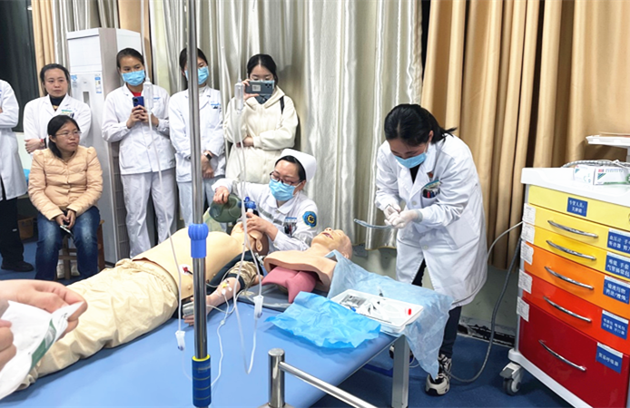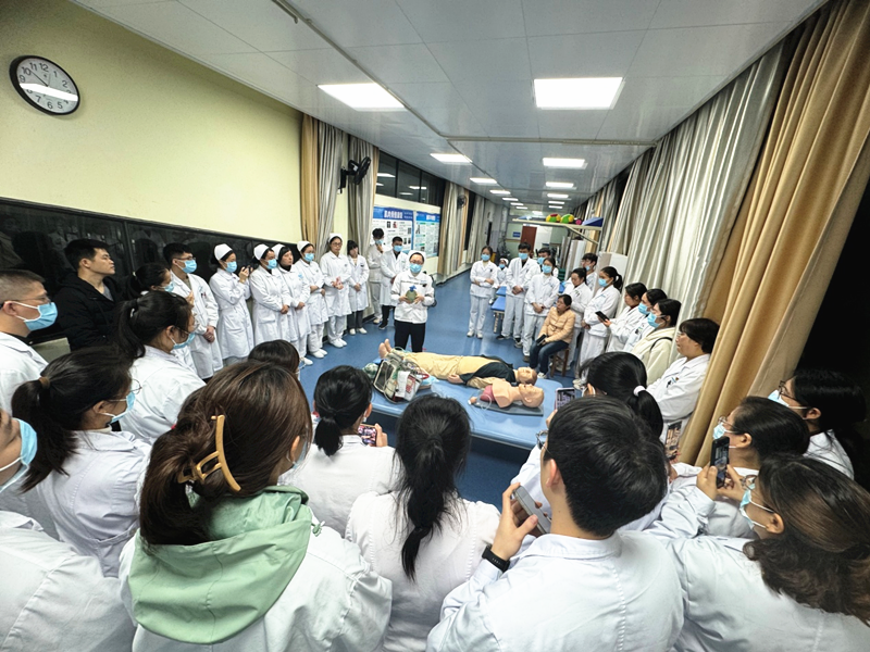 培训模拟了病房内住院患者心跳呼吸骤停的抢救场景开展救治演练。演练中,急诊科团队梳理了规范、标准的急救流程及注意事项。还传授了简易呼吸器的正确使用方法、最新的多人合作CPR的方法,气管插管的方法以及人工气道的建立和护理、抢救药品的正确使用、窒息的抢救方法及技巧等,为我们今后的工作提供了最新的指南和最合理优化的流程,受益匪浅。