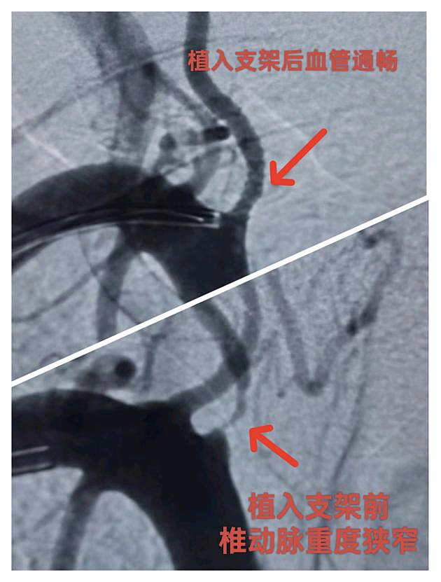 是心脏更重要还是大脑更重要?答案是都重要!广西科技大学第一附属医院胸痛中心、卒中中心联合启动导管室,立即为患者行一站式心脑血管造影,造影显示患者冠脉血管有狭窄但已再通,考虑是用药后血管再通,而脑动脉造影显示患者右椎动脉狭窄达99%!根据泛血管管理中心多学科会诊机制,经心血管内科、神经内科、导管室联合会诊商讨决定,考虑冠状动脉用药后血管再通,患者目前右椎动脉病变更严重,优先处理椎动脉病变,于是在术中经桡动脉入路于右椎动脉开口处为患者植入支架一枚,解除血管狭窄,全程只有右侧桡动脉一个穿刺点。术后患者胸痛已缓解,恢复言语后马上转到心血管内科接力救治,并于5天后经鼻烟壶区远端桡动脉穿刺入路完成右冠脉严重狭窄段支架植入术。这是我院首例经桡动脉入路椎动脉支架植入术,患者术后恢复更快、体验更佳。
