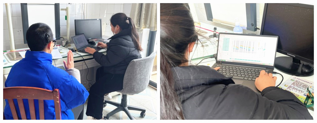 体格检查完毕,听力师通过将植入者体外设备的处理器与编程器通过编程导线相连,首先先检查人工耳蜗的植入状态,判断是否每个电极都接触良好,测试其神经反应遥测波形。在打开所有通道让耳蜗能听到外界声音之前,听力师会通过电脑中的程序向电极发出相应的刺激,通过让其主动反馈或行为观察的方式,目的是尽量让所有的电极通道相互平衡,找到其最适合的“私人定制”刺激量。随着设备启动的一刹那,紧张而又充满期待。随着调试的深入,患者脸上逐渐泛起了惊喜与激动的笑容,仿佛在那一瞬间,世界从寂静走向了绚烂多彩。