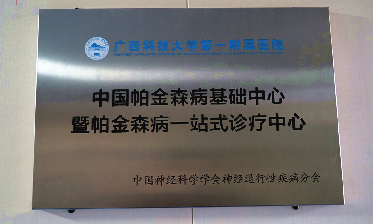 在第28个“世界帕金森病日”来临之际,4月7日早上,中国帕金森病基础中心暨帕金森病一站式诊疗中心在广西科技大学第一附属医院医技楼三楼正式揭牌。揭牌仪式特邀广州医科大学附属第一医院神经诊疗中心徐评议教授和广西医科大学第一附属医院沈岳飞教授,广西科技大学第一附属医院党委副书记、院长覃天教授,副院长张施明教授、副院长黄进瑜教授共同揭牌。