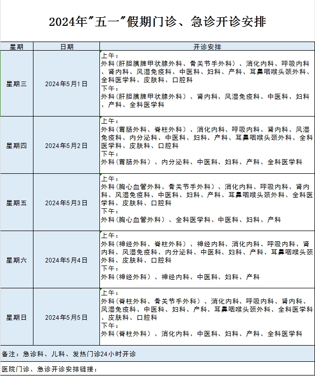 【广西科技大学第一附属医院 】“五一”劳动节假期排班表