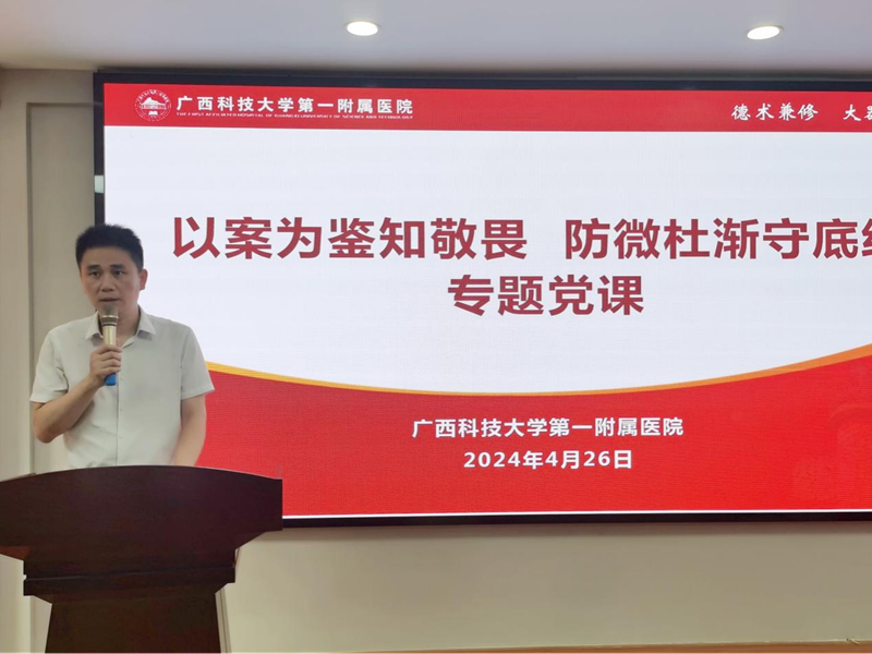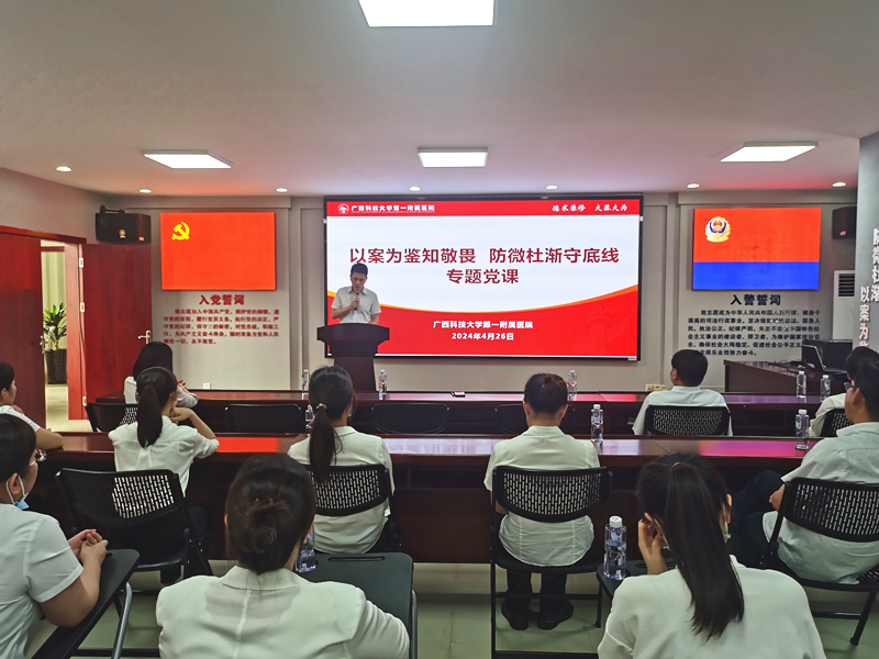 潘旭纪委书记结合医院党纪学习教育以及清廉医院建设工作,为参加警示教育的中层干部及关键岗位上《以案为鉴知敬畏 防微杜渐守底线》专题党课,并提出工作要求:一要强化思想政治认识,扎实推进党纪学习教育,做到学纪、知纪、明纪、守纪,推动《条例》学习入脑入心。二要强化以案明纪,以案为鉴,增强廉洁方面的思想自觉和行动自觉,做到心中有党、心中有责、心中有戒;三要全面深化清廉医院建设,构建起制度监督教育并重的惩治和预防腐败体系、强化制度建设,提高制度执行力、做实各类监督,严管与厚爱相结合。