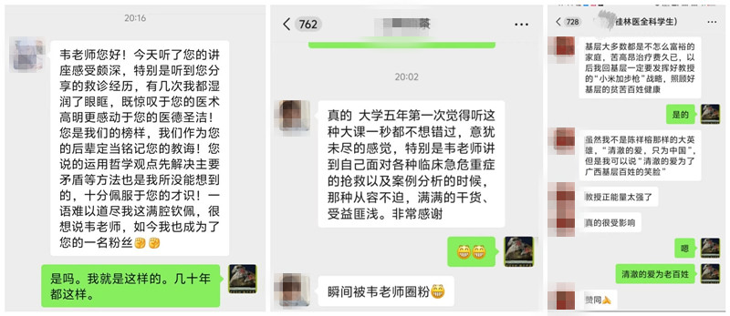 健康所系,性命相托。韦建革教授强调,年轻医学生在成长的路上需要走正道,常怀感恩之心,勤学深思,一定会成为卓越的医生。2小时的讲座吸引了600多名师生前来聆听,会后有不少学生感慨:“一秒都不想错过。”,同学们表示收获颇丰,明确了自己未来奋斗方向。(急诊科 陆超婷 黄玮)