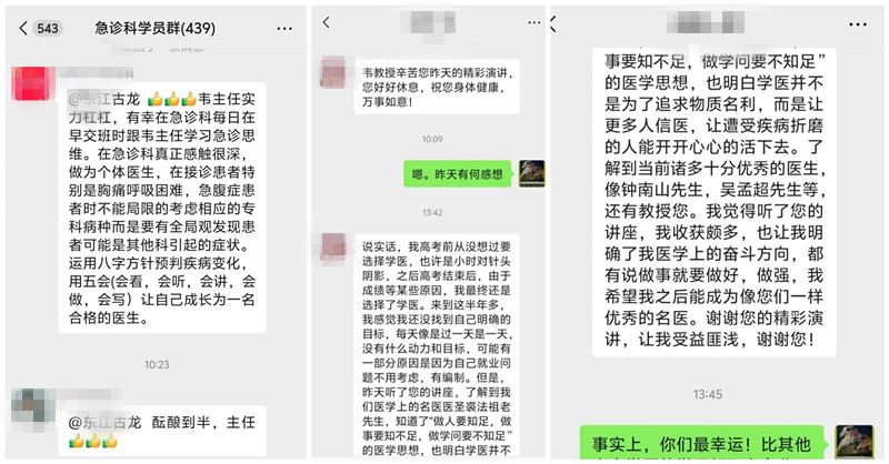 韦建革教授同时还引用裘法祖教授的话,告诫年轻医护人员,医者应该德才兼备,要“会看、会听、会讲、会做、会写”,在历练中不断成长。