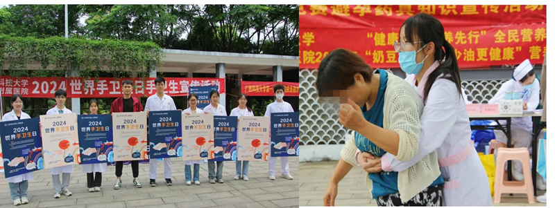 除了义诊服务外,还精心安排了急救技能现场培训、手卫生培训、免费测量血压、血糖,以及饮食、运动、营养、居家安全用药指导。