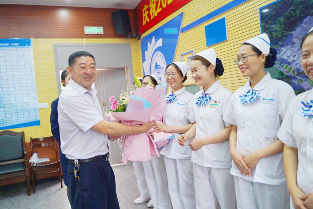 刘宝臣为优秀护士代表送上鲜花
