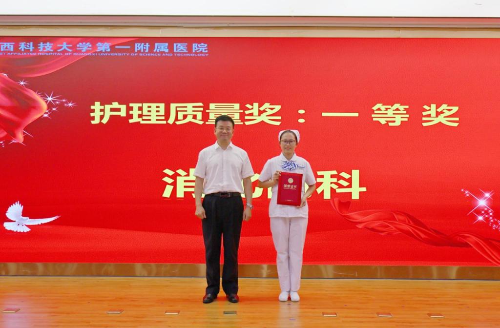 覃天为院内优秀护士颁奖