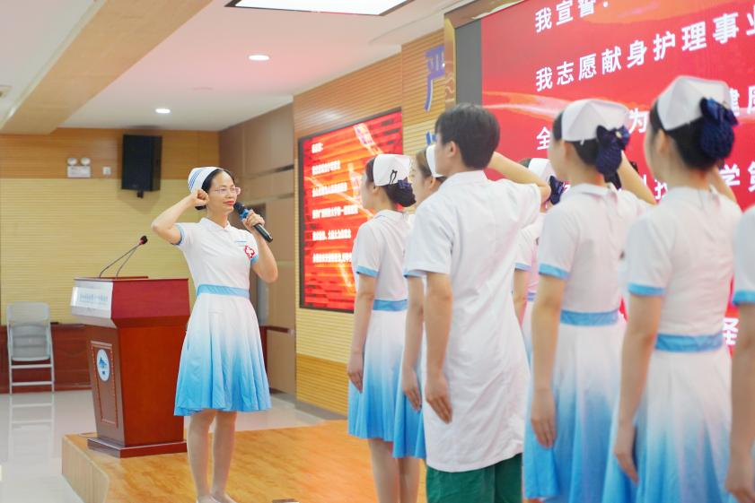 活动中还播放了医院(学院)第113个国际护士节宣传视频,进行了护理服务礼仪情景现场展示,对急危重患者进行抢救、对被病痛折磨的患者进行安抚、不分昼夜的坚守岗位……平日工作中的点点滴滴,生动地展示在面前,现场无数来自一线岗位的白衣天使湿了眼眶。全体参会护理人员还进行了庄严地宣誓。