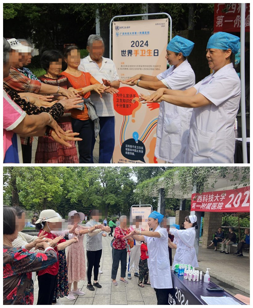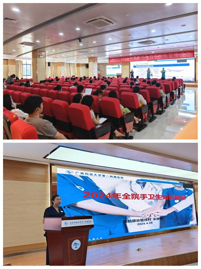 2024年5月5日是第十六个“世界手卫生日”,为进一步强化全院职工医院感染防控理念,提高手卫生相关知识知晓率、依从性和正确性,预防与控制医院感染的发生,同时也为了宣传手卫生知识,让人人都成为感控的实践者,广西科技大学第一附属医院医院感染管理科(下简称“院感科”)组织开展了以“感染控制“手”当其冲”为主题的一系列手卫生宣传活动。党委副书记、院长覃天,副院长张施明参与手卫生宣传活动。