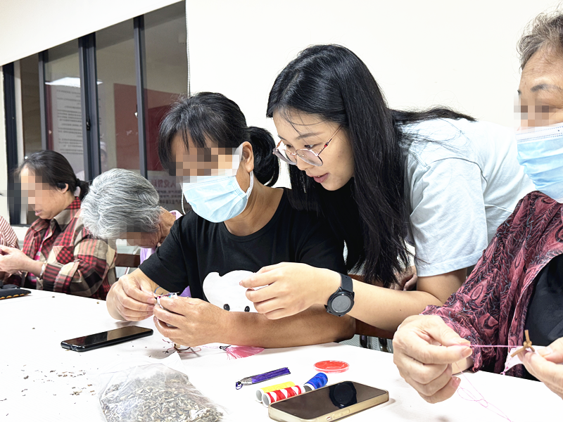 患者们兴致勃勃地跟着学习,认真地剪裁、缝制,在制作过程中互相帮助、相互鼓励,整个病房里充满了欢声笑语,空气中弥漫着浓浓的节日气氛。