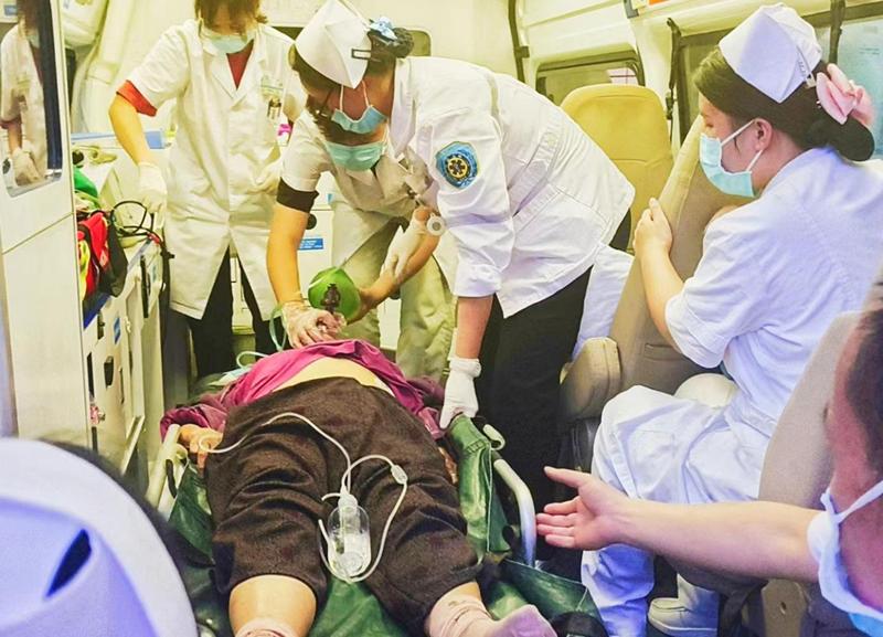 急诊医护在现场、救护车上对危重病人行人工呼吸回到急诊科场景