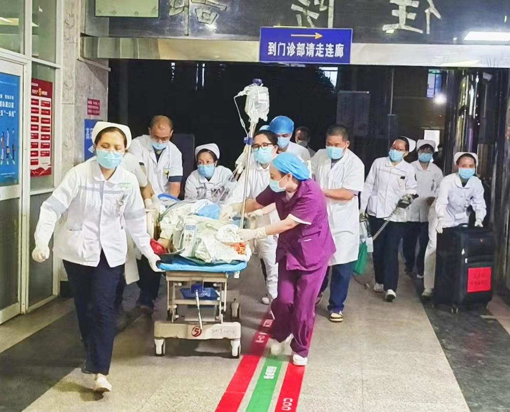 急救团队争分夺秒救治重伤员,转送手术室急诊手术