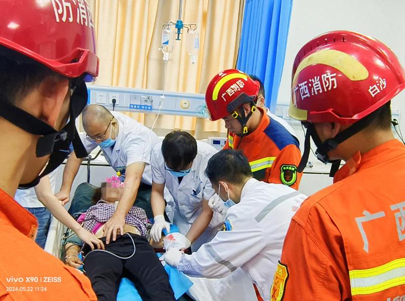 急诊科医师与广西消防战士共同救治伤员