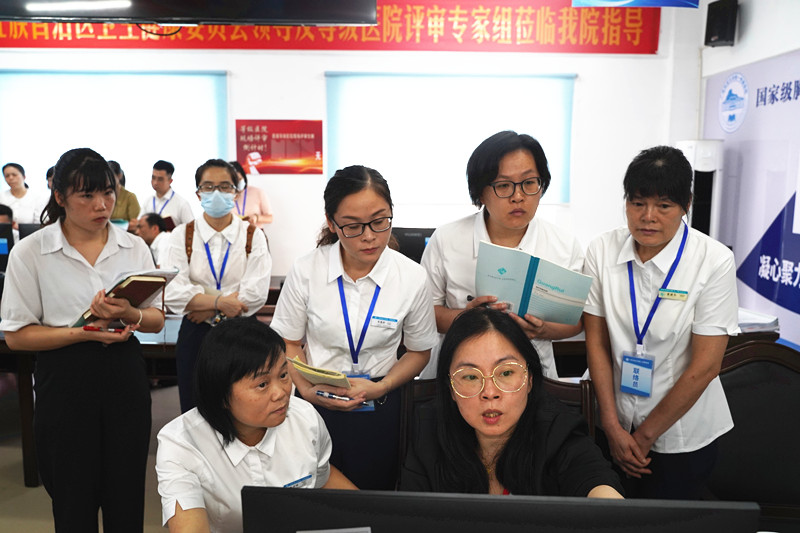 为期两天的评审过程中,评审专家分为医院管理、医疗管理、医技护理和数据核查4个小组,深入到医院各临床、医技和行政部门,围绕评审标准,通过听取汇报、查阅台账、数据核验、现场检查员工操作、员工访谈、患者访谈、实地查看等方式,就医疗服务能力和质量安全监测数据等评审中心内容,全方位、立体化、多维度、深层次的检查和考核。