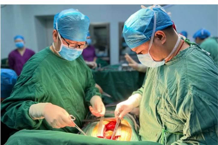 2024年初,55岁陈某不明原因发烧、胸痛、胸闷、气促,到我院治疗。经过检查发现其患的是严重的感染性心内膜炎,且已经出现感染的细菌侵袭心脏瓣膜并出现瓣膜功能失常的情况。时间就是生命,黄小龙主任立即召集重症医学科、麻醉科、心血管内科等多学科联合会诊。“这是一种内科炎症引起的心脏瓣膜疾病,病死率高,主动脉瓣、二尖瓣处聚集的细菌感染对心脏泵血功能造成严重影响,可引发一系列致命的并发症,风险巨大,但外科手术是唯一出路。”黄小龙决定突破禁区,尽快手术。经过多个学科通力合作,成功为患者实施了二尖瓣替换术、右室流出道成形术、三尖瓣直视成形术(瓣环环缩术)、左室流出道狭窄疏通术、肺动脉瓣狭窄矫治术、主动脉瓣置换术,手术顺利,患者转危为安。