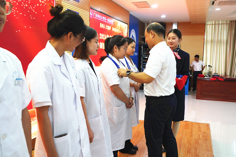 庞晓红、覃天为新获执业资格医生授听诊器