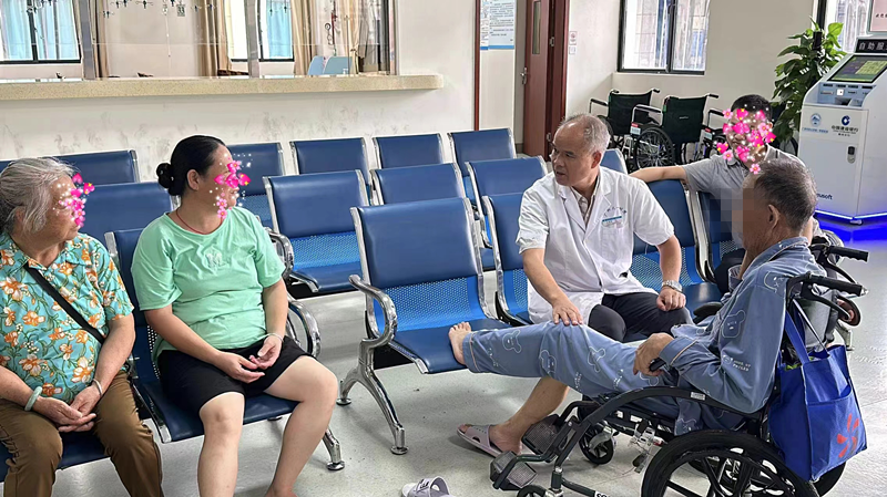 吴广知主治医师对病人的好是出了名的。有一次出诊面对一个严重低血钾全身无力、无法动弹又有呼吸困难的年轻小伙子,因为楼梯通道过于窄小,担架无法通过,而病人情况又危急,在确认患者情况适宜转运后,毫不犹豫的一步步的将病人背下楼。