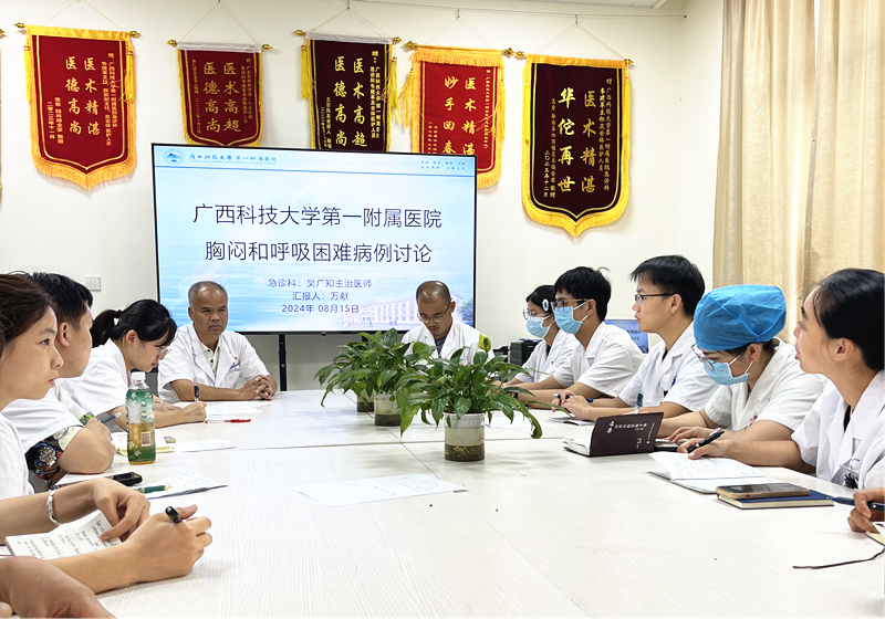 急诊科韦建革主任是这支队伍的领头羊,他是医院首席急救医学专家,柳州市第二届“十大好医师”,在学生眼里他是严师,在病人眼里他是好医师,得到了病人、同事以及柳州市急救界同行的一致好评。每天都有各地的疑难病例前来找他,他也总是耐心的询问、认真的查体和全面的分析,也同时化解他们心中的疑虑。