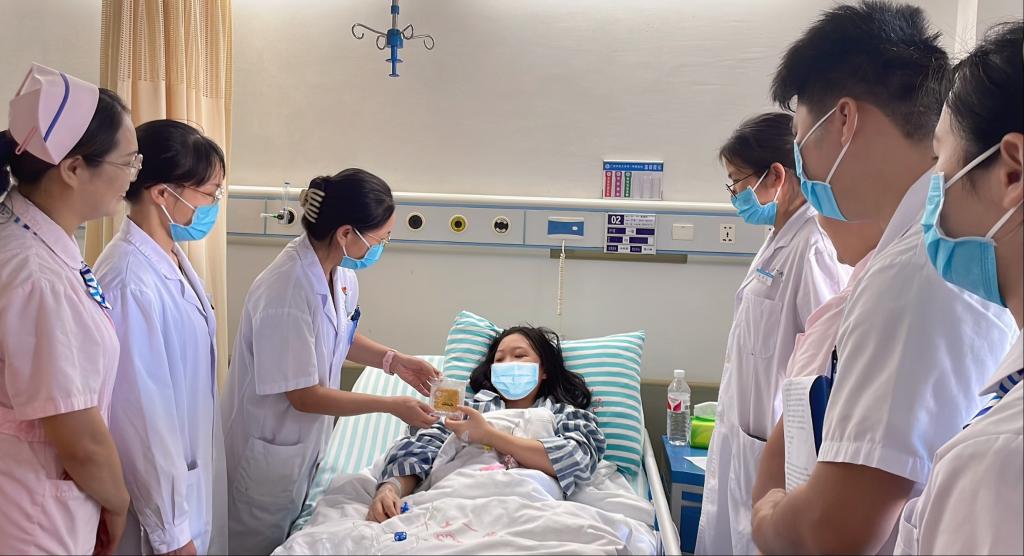 妇科护士长何维媚与患者分享个人经验、传播健康知识,消除了术后患者及家属的焦虑心理。心与心的交流,拉近了护患之间的距离。