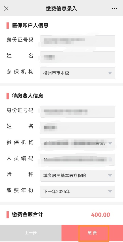 2025年度广西城乡居民基本医疗保险个人缴费标准为400元/人/年。