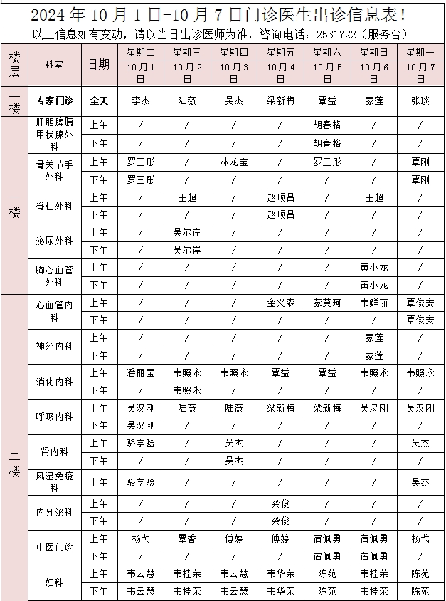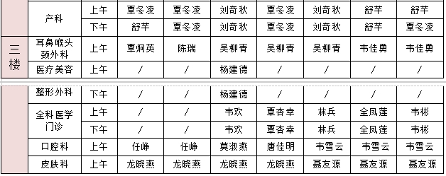 一、假期特设专家门诊,主要为内科专家坐诊,中医科、外科、妇产科均安排有医师出诊,详见下表: