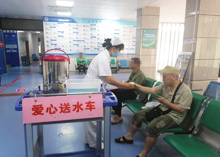 当患者踏入门诊时,或许会因为疾病而焦虑,也可能会因为一时找不到就诊科室而迷茫,也可能会因为等待而疲惫。在候诊的间隙,爱心送水车就像一位善解人意的使者,在夏季带来清凉,在冬季驱散寒冷。爱心送水车会在门诊部流动送水,为需要饮水又找不到取水点或者行动不便的患者及时带来方便。
