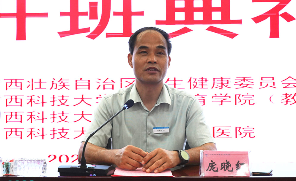 医院党委书记庞晓红致辞。他谨代表医院向参加这次培训的各位学员表示热烈欢迎,向一直以来关心和支持我院全科医生转岗培训工作的各位领导表示衷心感谢。庞书记还简单介绍了医院的历史、发展概况及全科医生转岗培训的情况。他说,2019年以来,医院共完成了541人的全科医生转岗培训任务,今年目标任务是62 人。全科医生是基层卫生医疗服务体系的守门员,承担着预防保健、诊断、治疗、康复等多项任务,是居民健康的守护者。加强全科医生转岗培训,对提升基层医疗服务能力、推进分级诊疗制度建设、满足人民群众日益增长的卫生健康需求具有重要意义。自治区卫健委提出,到2025年城乡每万人口拥有4名合格的全科医生的目标,希望全员们珍惜这次难得的学习机会,一起为实现目标而努力。全科医生转岗培训是通过系列理论学习、临床实践和技能提升,培养一批具有高尚职业道德和良好专业素养的全科医生,为我区医疗卫生事业的发展贡献力量,以饱满的热情和严谨的态度投入到培训中,注重理论与实践相结合,多思考、多实践、多交流,全面掌握核心、实用的医学技术,同时也要严格遵守培训纪律,服从培训基地的统一管理。全科医生转岗培训,不仅仅是一次学习机会,更是一次提升自我服务社会的机会,希望各位学员在培训结束后能够真正胜任基层卫生服务工作,为人民群众提供更加优质、高效的健康服务。