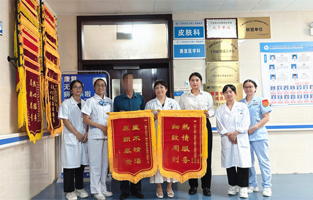陆奶奶出院之际,其家人给康复医学科送来了两面锦旗。除了感谢康复团队的高效康复、细心护理外,更是感谢照护师莫阿姨、梁阿姨、李阿姨的真心付出。这不仅仅是一份荣誉,更是奶奶和家属对我们的信任与感激。它见证了奶奶这段艰难却又充满希望的康复之旅,也激励着我们在未来的日子里,继续用我们的专业、耐心和爱心,为每一位患者带来优质的医疗服务。