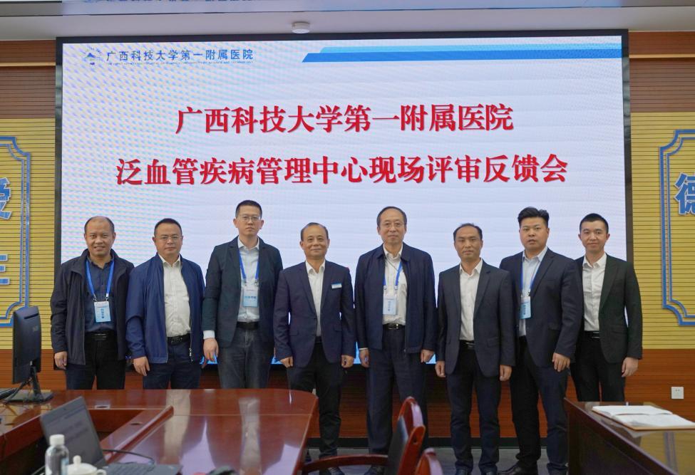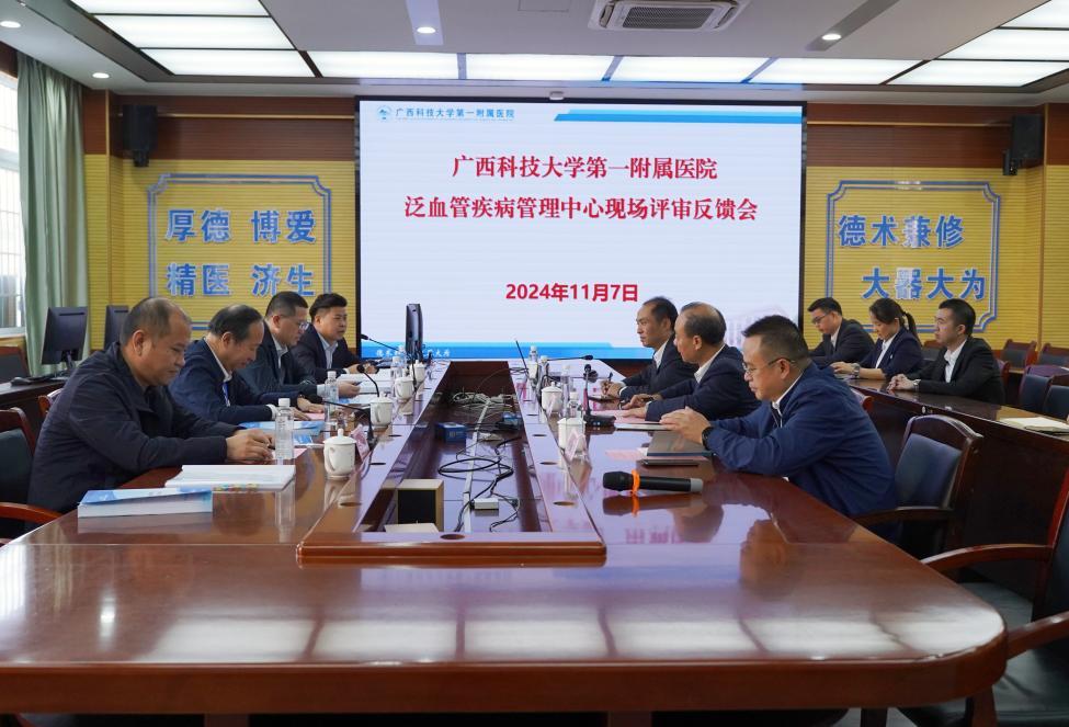 11月7日上午,由天津市胸科医院丛洪良教授带队一行四人组成的泛血管疾病管理中评审专家组到广西科技大学第一附属医院(第一临床医学院)(下简称广西科大一附院)进行现场评审。广西科大一附院党委书记庞晓红、党委副书记、院长覃天等院领导出席评审工作启动会。广西科技大学第二附属医院(第二临床医学院)(下简称广西科大二附院)党委副书记、院长张施明作为我院泛血管疾病管理中心发起人及该中心执行主任出席了会议。覃天主持会议。