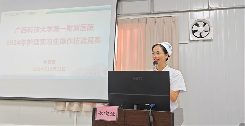 为进一步夯实护理实习生临床操作技能,展示新时代护理实习生良好的精神风貌,全面提升护理教学质量,2024年10月31日,广西科技大学第一附属医院护理部在医院临技中心举办护理实习生技能大赛。