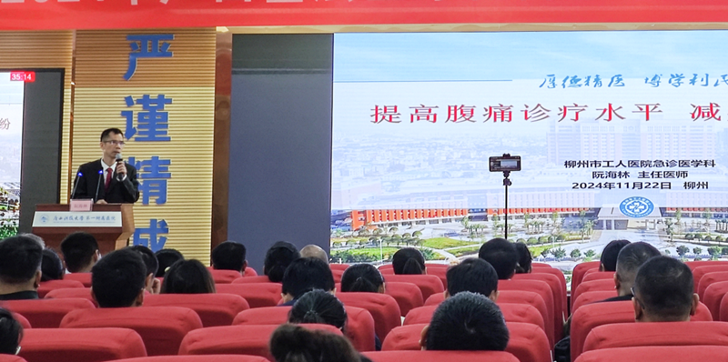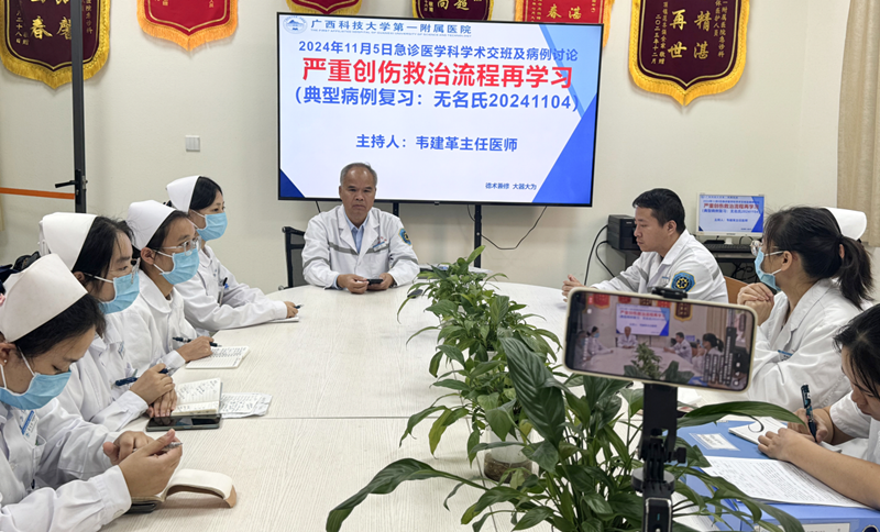 广西科技大学第一附属医院急诊科主任韦建革教授主持本次学术会议并授课