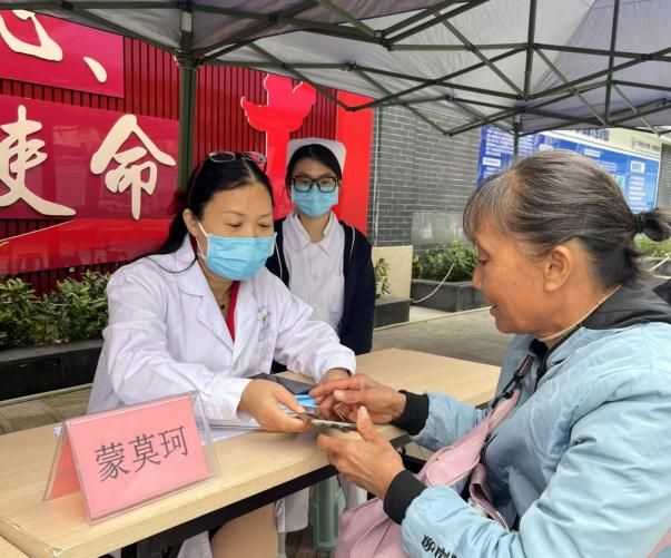义诊现场,心血管内科副主任李杰、护士长梁潇带领科室医护人员通过设立咨询台,免费向群众提供健康咨询、测量血压、发放心力衰竭知识宣传资料、播放心衰防治知识科普视频普等,提醒群众要合理膳食、适当运动、戒烟戒酒、低油低盐、注重心理平衡,让群众真正认识到保持健康的生活方式对防治心力衰竭的重要性。