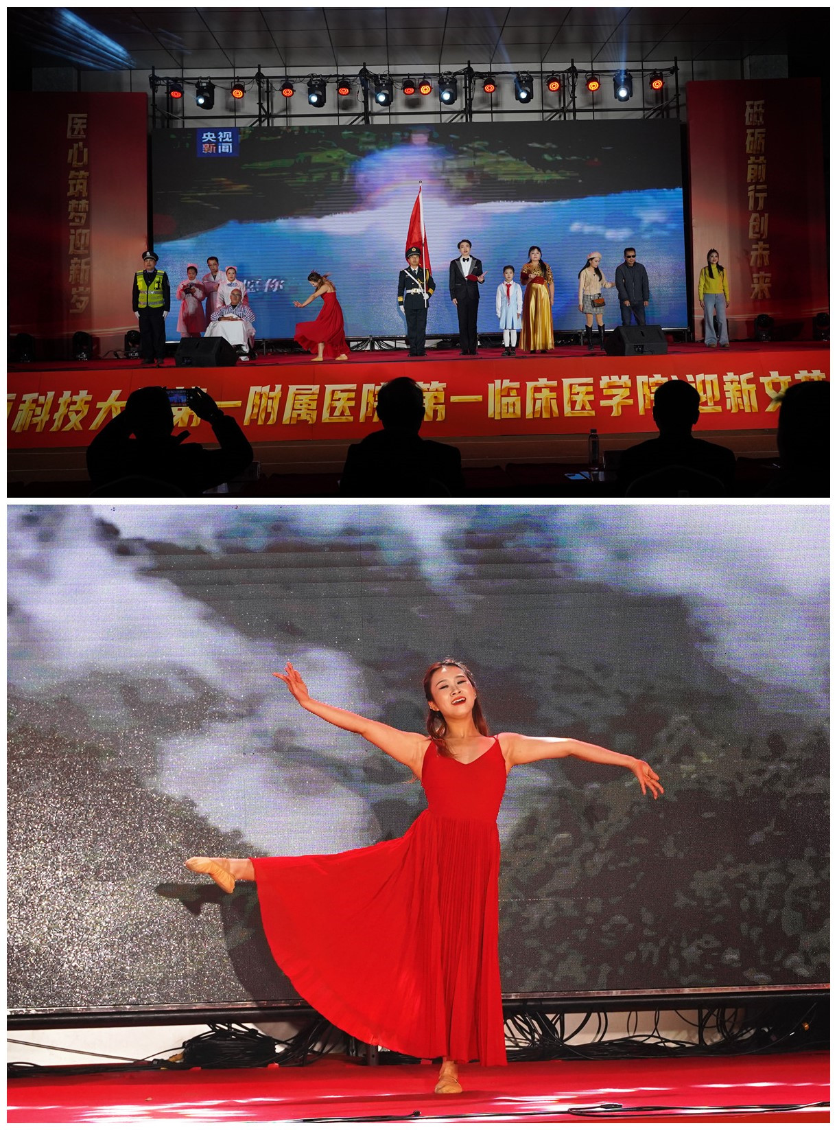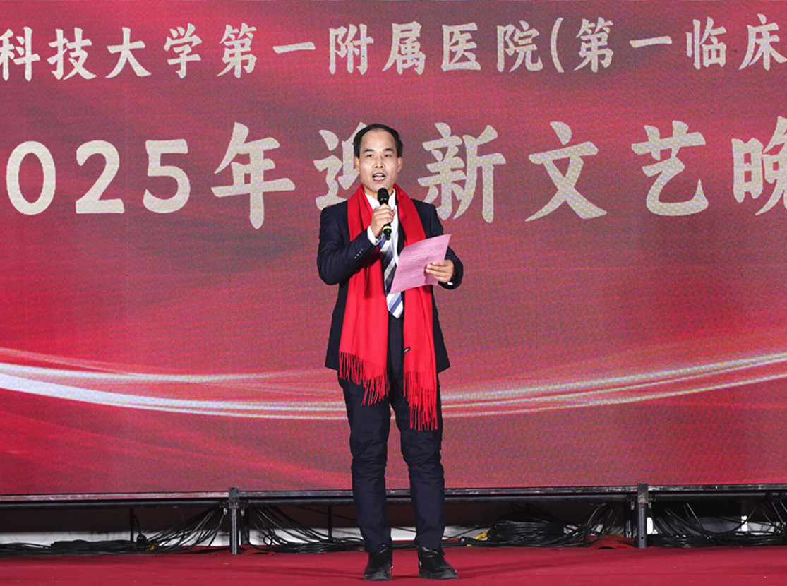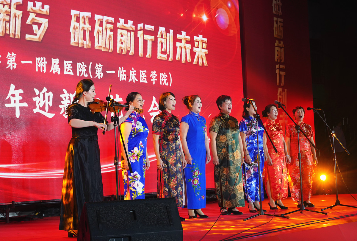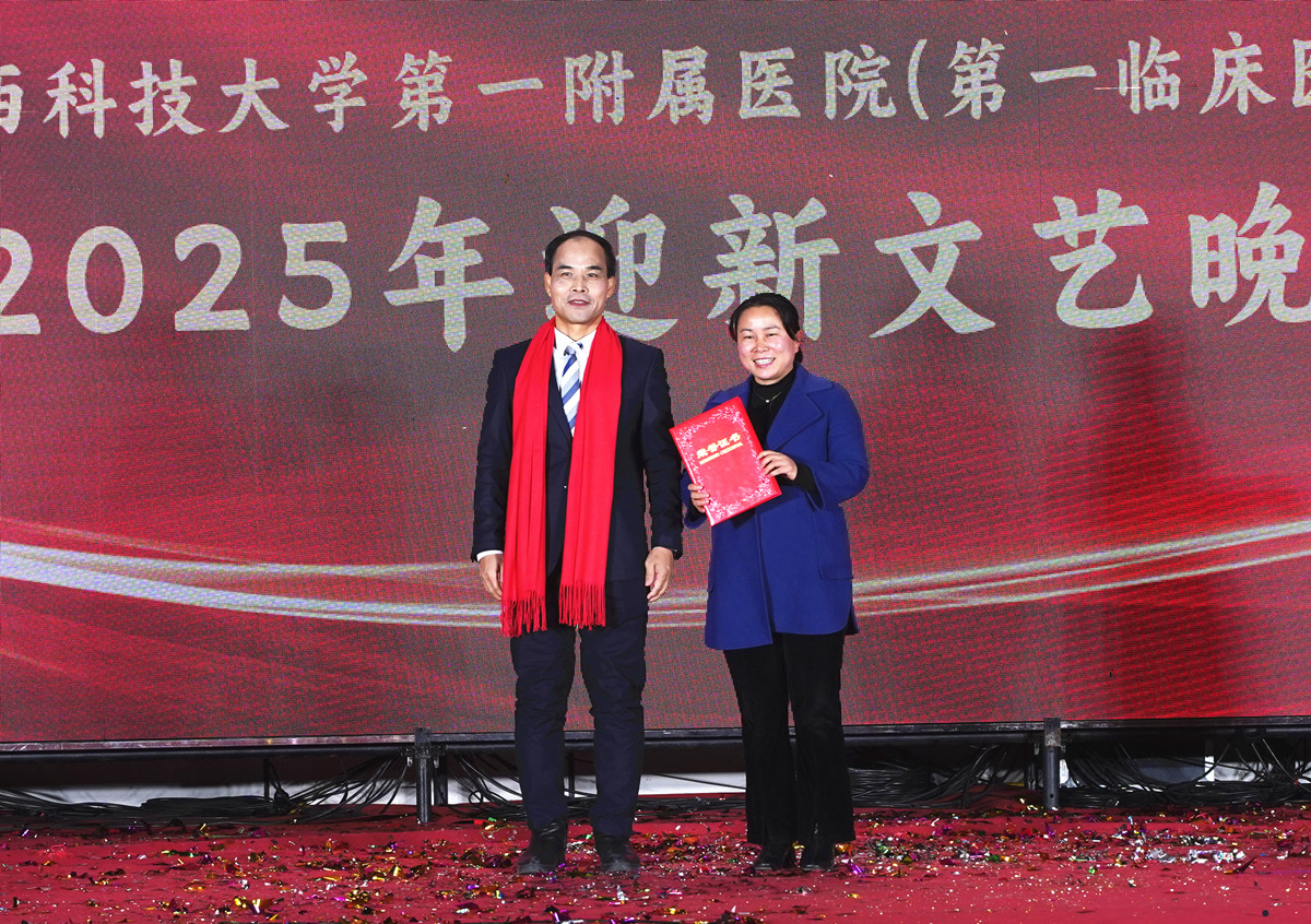 为丰富职工业余文化生活,展现职工团结奋进、蓬勃向上的精神风貌,2024年12月27日晚,广西科技大学第一附属医院(第一临床医学院)在学院操场举办了“医心筑梦迎新岁 砥砺前行创未来”2025年迎新文艺晚会。广西科技大学党委副书记宾月景,柳州市柳北区人民政府副区长梁融静,柳北区卫生健康局局长、党组书记、柳北区中医药管理局局长潘新胜,医院(学院)党委书记庞晓红、党委副书记、院长覃天等领导出席晚会。广西科技大学工会、学生工作部、团委领导,柳北区妇联领导,各医联体单位领导,评委老师、师生代表、职工及家属近400人欢聚一堂。