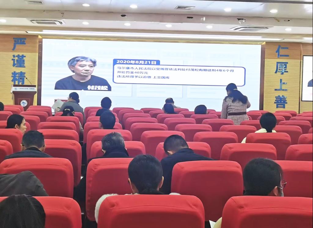 会前,与会人员集中观看了腐败典型案件警示教育片,教育引导党员干部职工要以案为鉴,知敬畏、存戒惧、守底线,时刻紧绷廉洁弦,严格“守节”、不踩“红线”。