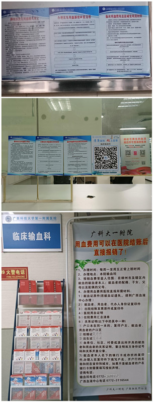 此外,医院还在重点窗口、输血科、重症医学科、手术室门口及各病区宣传架上存放无偿献血相关宣传资料,供患者及家属取阅;粘贴献血相关政策二维码,供患者及家属扫码了解相关政策;在医院电子屏幕播放无偿献血相关视频等进行宣传。