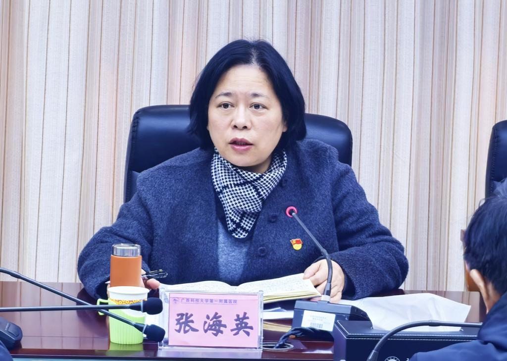1月13日上午,广西科技大学第一附属医院(第一临床医学院)党委在学校文昌校区办公楼6-1会议室召开2024年度领导班子民主生活会。广西科技大学党委常委、副校长张海英同志,广西科技大学医学部党委常务副书记廖奕同志出席会议并作指导。第一附属医院(第一临床医学院)全体领导班子成员,党员代表参加会议。会议由医院(学院)党委书记庞晓红同志主持。