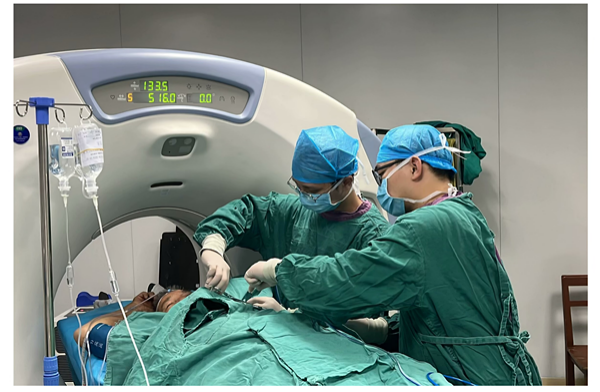 2024年11月,胸心血管外科成功完成三例经皮肺肿瘤CT引导下微波消融手术,仅仅用一根细针就“烧死”了肿瘤细胞。该项手术的开展,为不耐受手术或不愿意手术的患者提供了“新选择”,为医院肺癌治疗增添了“新武器”。