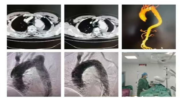 2024年12月,一名70岁的黄先生突发胸骨后剧烈疼痛,我院120急诊接回行主动脉CTA检查显示胸主动脉穿透性溃疡伴壁内血肿形成,完善术前准备,予患者行微创手术(经皮胸主动脉覆膜支架腔内隔绝术)。黄先生转危为安,已康复出院。
