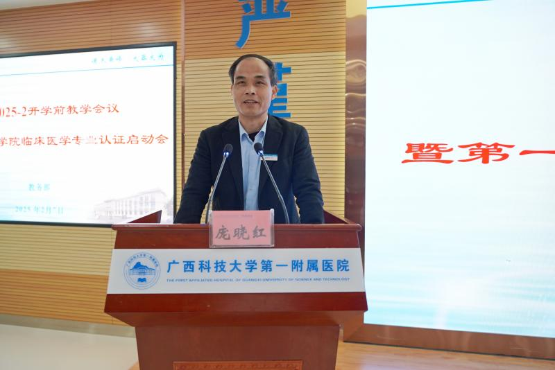 2月7日下午,广西科技大学第一附属医院(第一临床医学院)在该院学术报告厅召开2024-2025-2开学前教学会议暨临床医学专业认证启动会。全体医院领导出席会议,会议由副院长黄进瑜主持。各教研室及相关职能部门负责人,各教研室教学秘书及专任教师、硕士以上学历医技人员等共计100多人参加了会议。