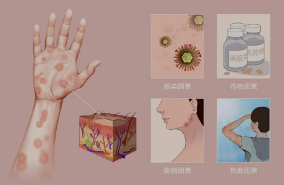 说起多形红斑可能很多人都不了解,多形性红斑是一种急性炎症性皮肤黏膜病,临床症状常表现为皮疹多形、红斑、丘疹、风团、水疱等,严重时会导致皮肤感染,甚至溃烂。严重危害患者的身体健康。因此,了解和预防多形红斑至关重要。