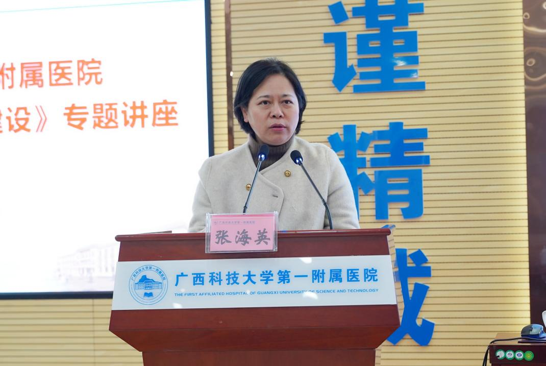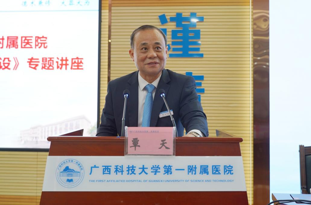 3月5日下午,广西科技大学“医院高质量发展中的学科建设”专题讲座暨医保精益管理公益课堂在学校第一附属医院(第一临床医学院)学术报告厅举行。活动特邀广州医科大学附属第三医院原党委书记、院长,广东省医院协会医院医保管理专业委员会主任委员赖永洪教授担任主讲嘉宾,广西科技大学党委常委、副校长张海英,柳北区卫健局领导、学校医学部及两所附属医院领导班子、中层干部等200余人参会。会议由我院党委副书记、院长覃天主持。本次讲座聚焦学科建设与学科带头人培养以及医保精益管理,旨在为医院高质量发展注入新动能。
