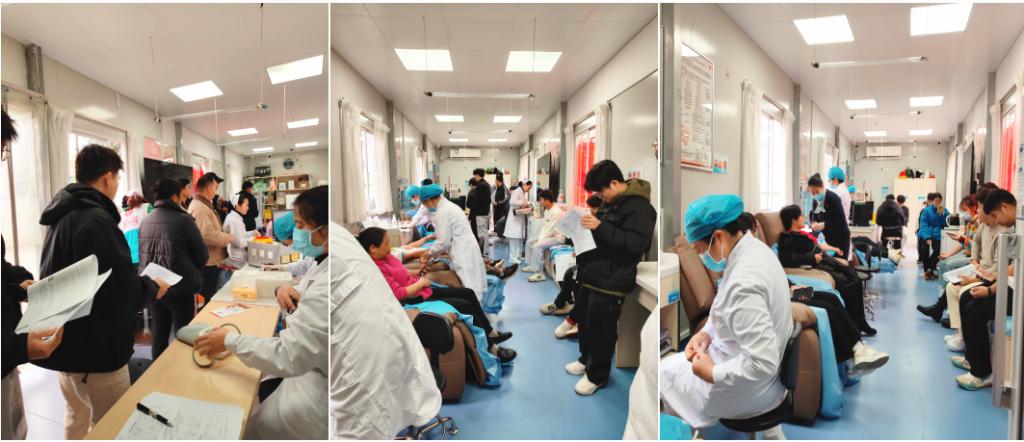 ▲大家排队体检和献血