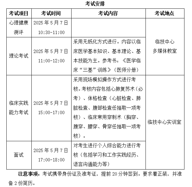 通过现场确认的学员统一参加医院组织的招收考试,考试形式包括理论、临床实践能力考试、心理健康测评及面试。