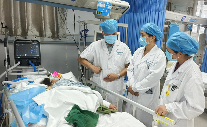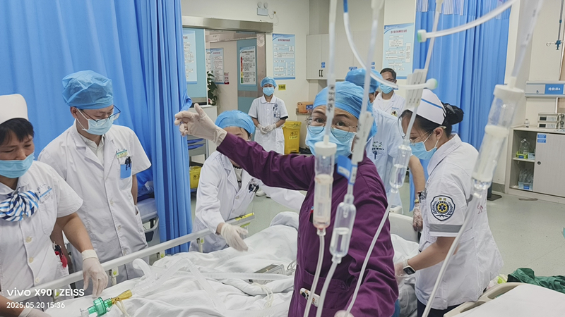 5月21日韦建革主任医师在ICU查房,患者已经清醒