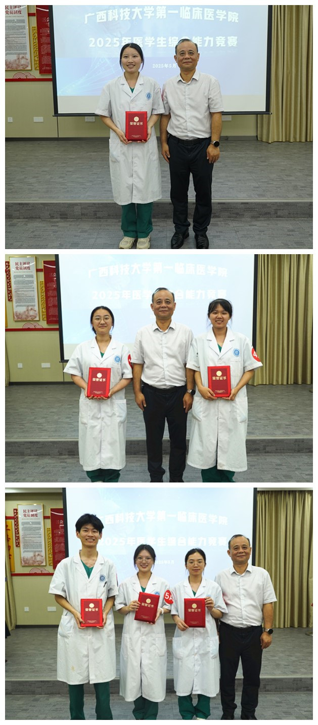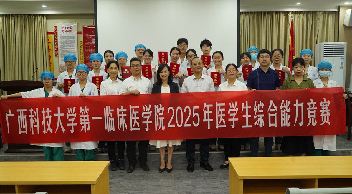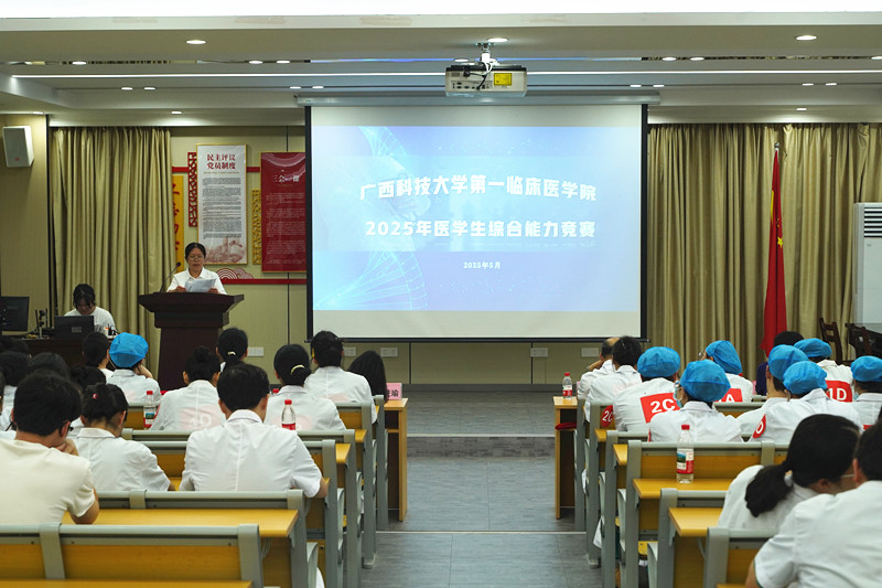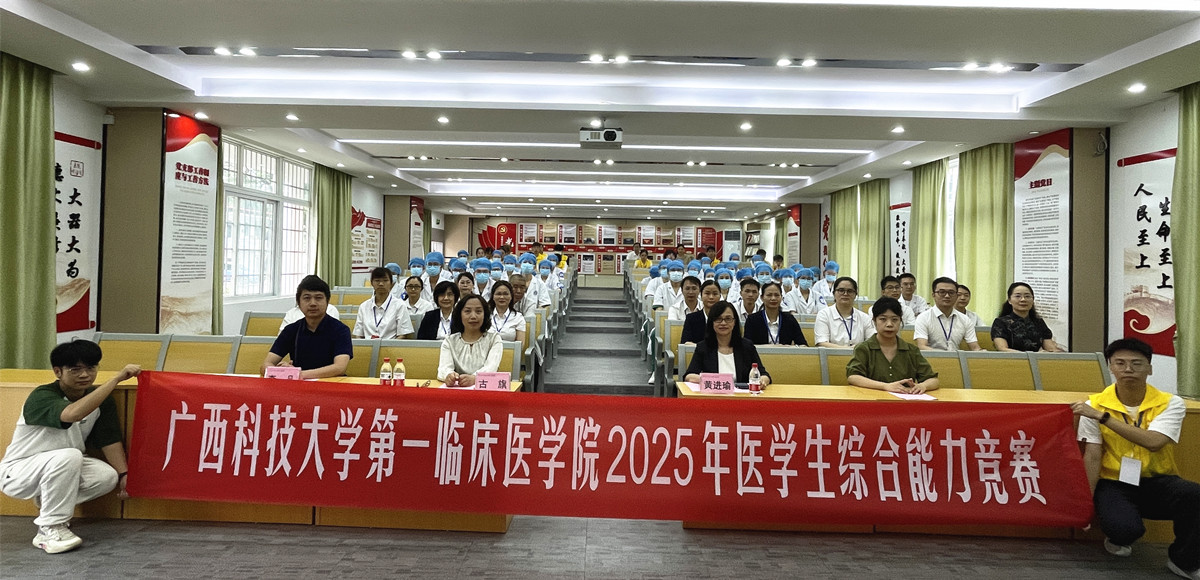 为进一步提高学院2021级本科学生的职业素养、临床思维及技能水平,遴选广西医学生综合能力竞赛的选手,5月30日,广西科技大学第一临床医学院成功举办2025年医学生综合能力竞赛。开幕仪式在党员活动室举行。医学部副主任、教学办主任古旗,第一临床医学院(第一附属医院)副院长黄进瑜出席开幕式。学院各教研室主任、教务部、各科室评委老师、参赛选手及志愿者等一百多人参加开幕式。