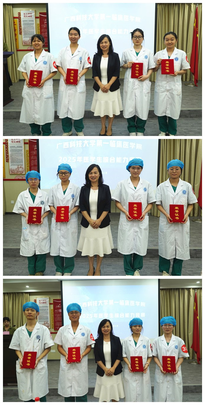 下午5点,闭幕式在第一临床医学院党员活动室举行。学院(医院)党委副书记、院长覃天在闭幕式上讲话,他说,现代医学用技能来提高临床诊疗能力势在必行,基本功扎实、技能增强,才能成为一个高素质的应用型人才。竞赛的目的就是加强大家的临床实践能力,希望参赛选手在医学浩瀚的海洋里面不断追求探索、不懈拼搏奋斗,将来更好的服务患者、服务社会。