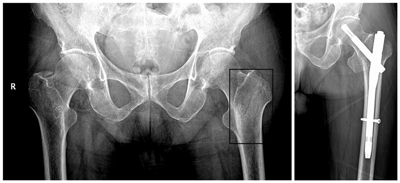 年近八旬的谢阿公不慎跌倒后,强忍左髋、左上臂剧痛,固执地在轮椅上静坐了三天三夜。阿公身患高血压、糖尿病,并且疼痛及前列腺的问题,导致他每隔10分钟需要排尿一次,一次不超过50ml,寝食难安,但是任由家人怎么劝说,谢阿公都倔强地拒绝就医。三天后,实在是因为谢阿公身体非常虚弱了,才由家属用轮椅送至我院骨科二病区——赵顺吕团队病房。接诊时,查体看见患者左侧肢体被动体位,下腹部膨隆。