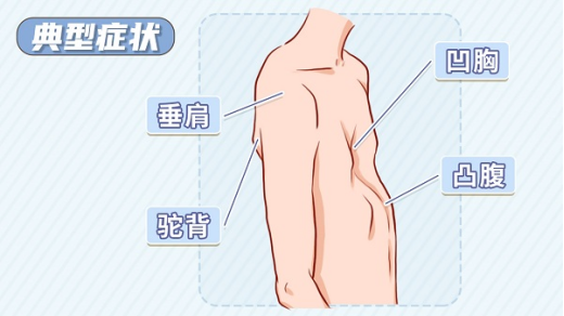 症状:运动耐力下降、活动后心悸,部分患者伴脊柱侧弯或驼背。